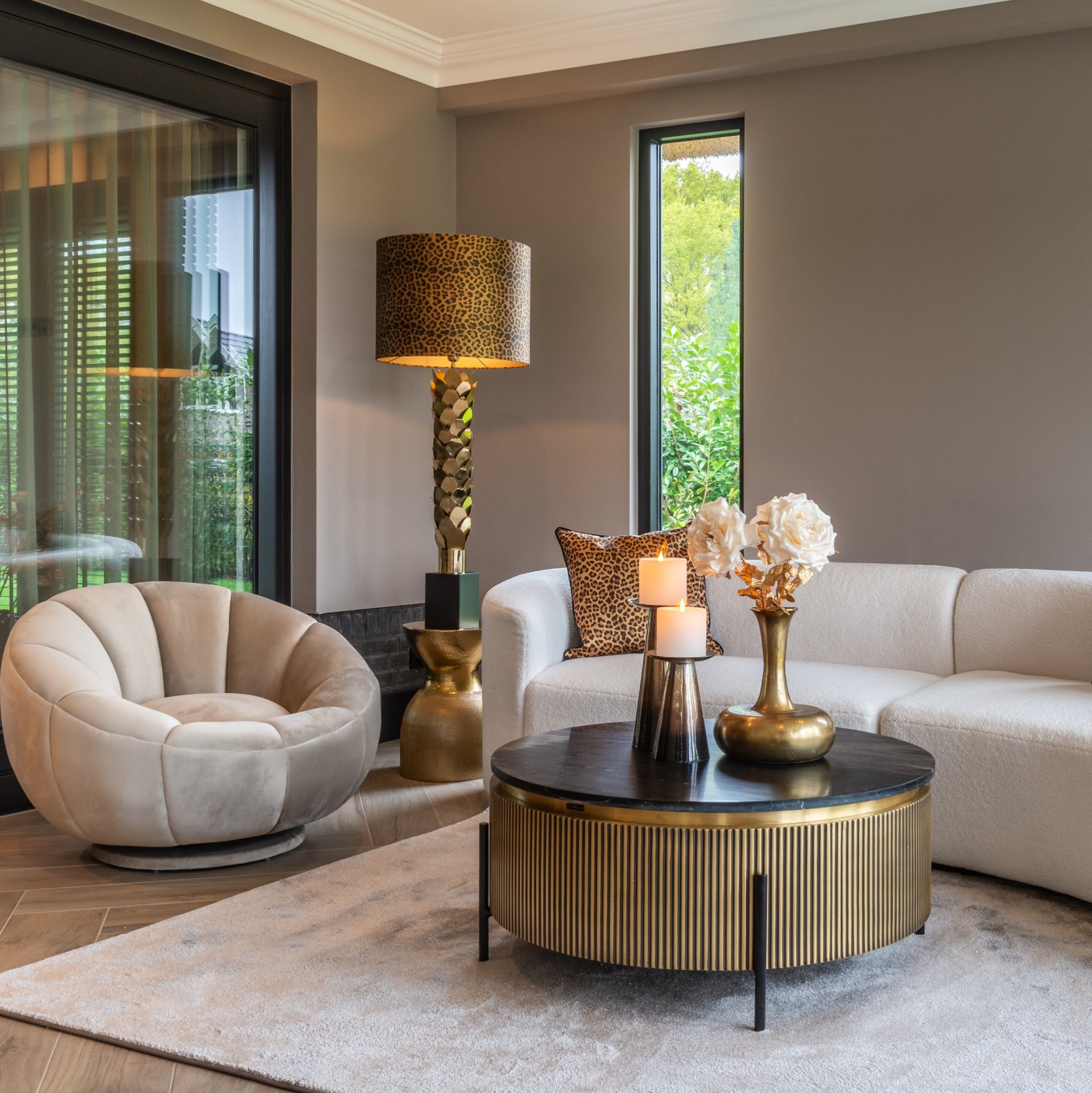 Ironville Brass dohányzóasztal ø90 – black marble